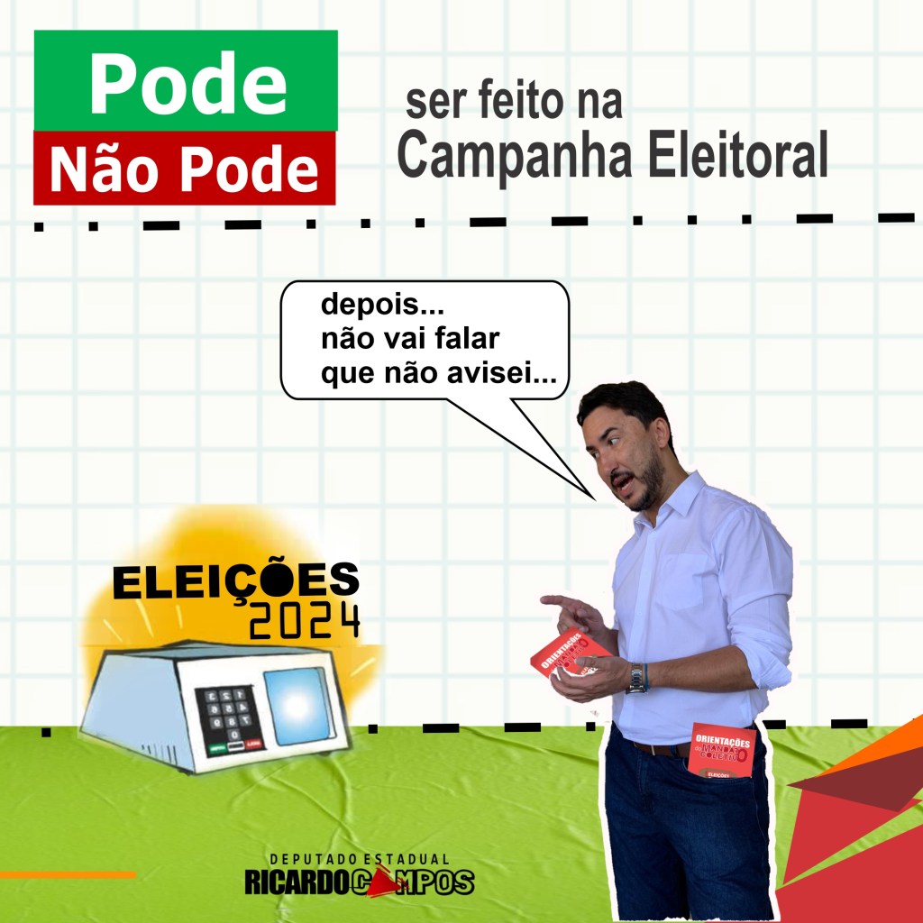 Eleições 2024 – Propaganda eleitoral – PODExNÃO PODE Publicado porricardocamposdeputado28 de agosto de 2024Publicado emSem categoria BAIXE AQUI A NOSSA CARTILHA PODE-NÃO PODE! PODE NAO PODE nas propagandas eleitorais 2024Baixar Compartilhe! Compartilhar no Facebook(abre em nova janela) Facebook Mais Imprimir(abre em nova janela) Imprimir Email a link to a friend(abre em nova janela) E-mail Compartilhar no WhatsApp(abre em nova janela) WhatsApp Curtir Carregando... Relacionado Publicado por ricardocamposdeputado Deputado Estadual de Minas Gerais Ver mais posts